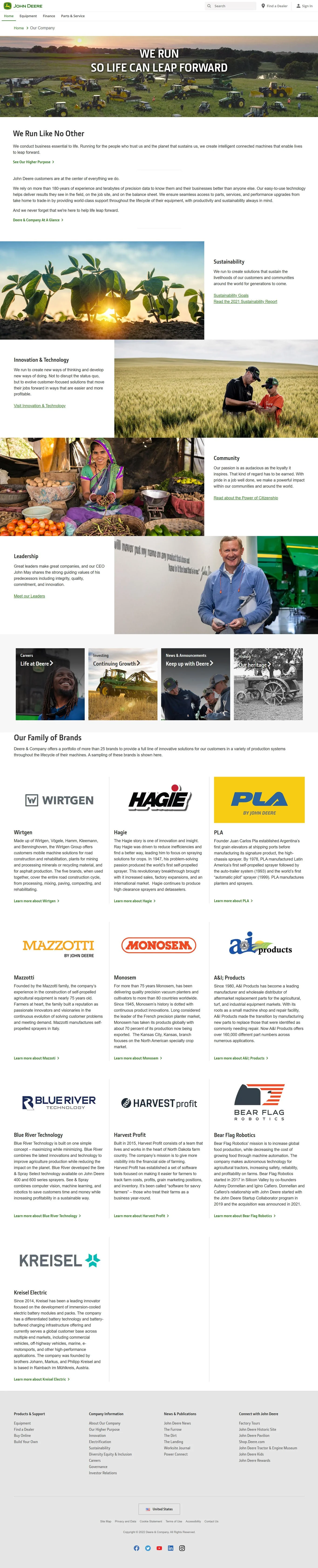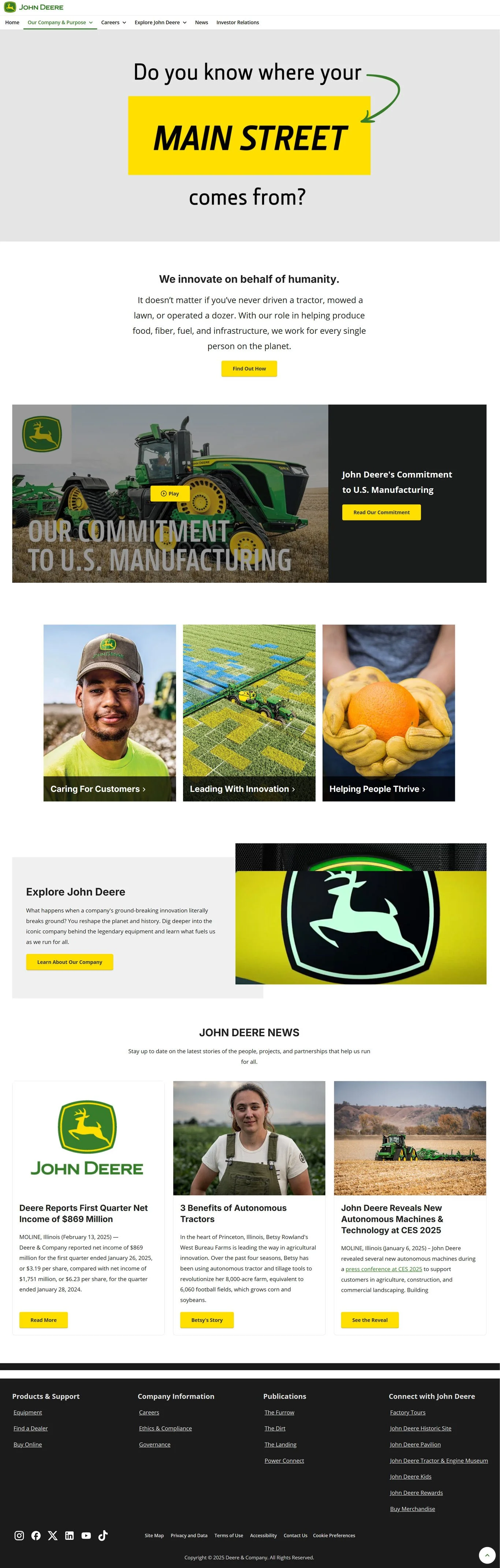 - All publishing work done in tandem while maintaining regular Deere.com news, including earnings releases, press releases, leadership updates, and general updates to all corporate web content